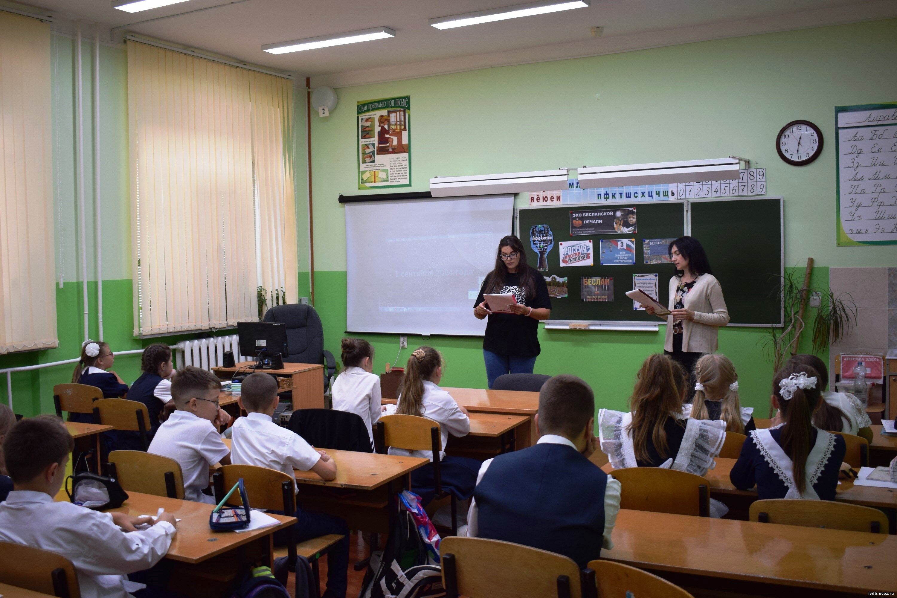 Урок-реквием «Эхо Бесланской печали» проведен в Ивнянской СОШ №1. Сотрудники Ивнянской детской библиотеки рассказали ребятам из 4 «В» класса, классный руководитель Зеленская Л. П., о страшных событиях, произошедших в школе №1 города Беслана в сентябре 2004 года, о захвате заложников, о героизме сотрудников правоохранительных органов и спасателей. Была подчеркнута важность мира и спокойствия, а также человеческие жизни, которые были унесены в результате этого чудовищного преступления. Детям напомнили, что безопасность – это общий долг, и каждый человек, начиная с себя, должен быть бд