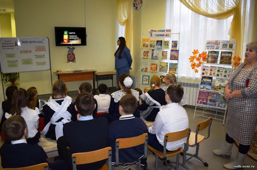 Ребята посмотрели мультфильм, из которого узнали, что происходит в организме человека при ВИЧ инфицировании и как не своевременное лечение этого заболевания приводит к СПИДу. Библиотекарь рассказала о том, как ВИЧ влияет на организм человека и почему так важно своевременно начинать лечение. Обратив внимание на то, что вирус передается главным образом через кровь, рассказала об эффективных методах профилактики.