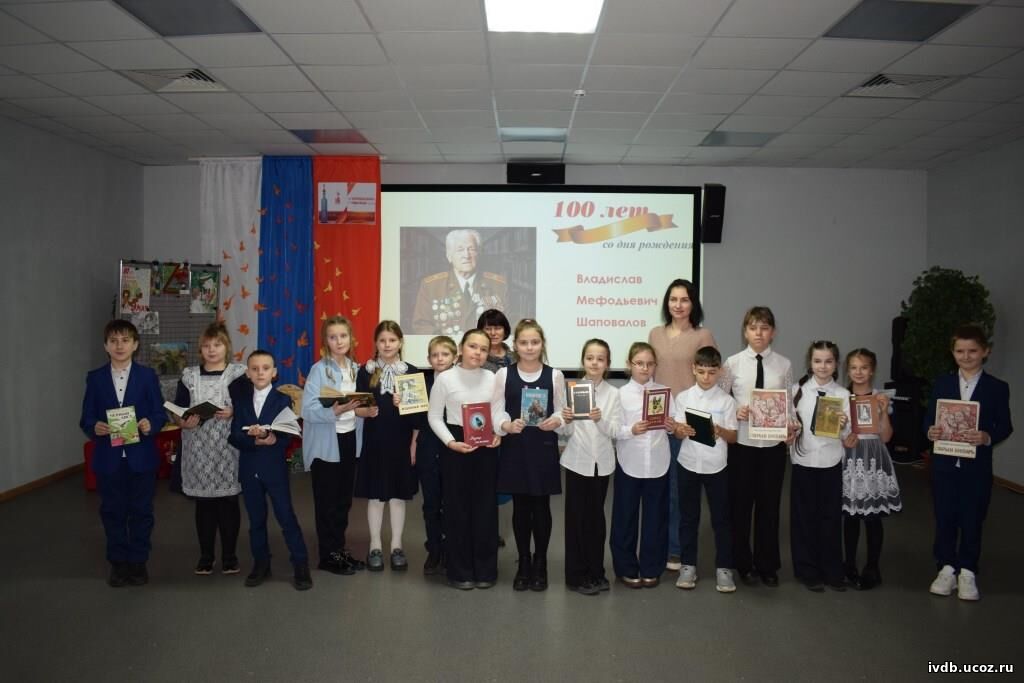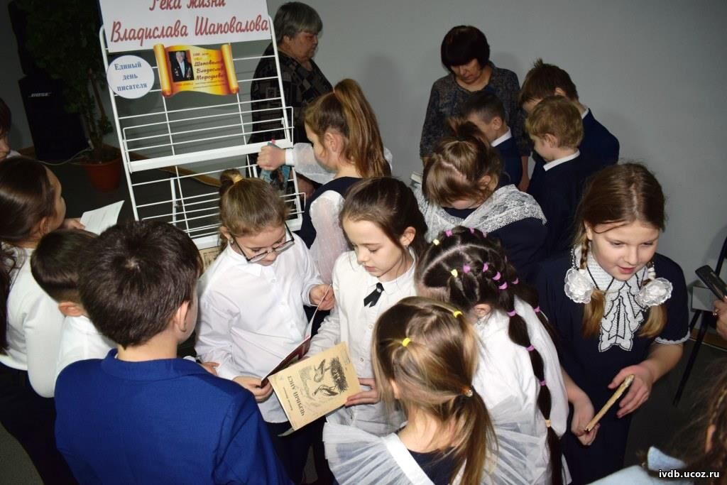 В рамках акции «Единый день писателя» в Ивнянской детской библиотеке прошел литературный альманах «Река жизни Владислава Шаповалова» приуроченный к 100-летию со дня рождения белгородского писателя. Участниками мероприятия стали ребята из 4 «В» класса школы №1, учитель начальных классов Л. П. Зеленская. В начале библиотекари рассказали детям о детстве писателя, его участии в Великой Отечественной войне, куда он ушел семнадцатилетним подростком и получил множество наград.
