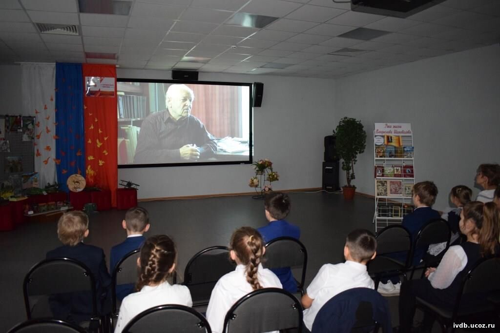 Чтобы ребята ближе познакомились с юбиляром был показан видео сюжет, снятый ещё при жизни Владислава Мефодьевича Белгородским региональным отделением Союза писателей России совместно с литературным музеем. В интервью В. М. Шаповалов рассказывает, как он попал на фронт и почему большинство его произведений написаны для детей.